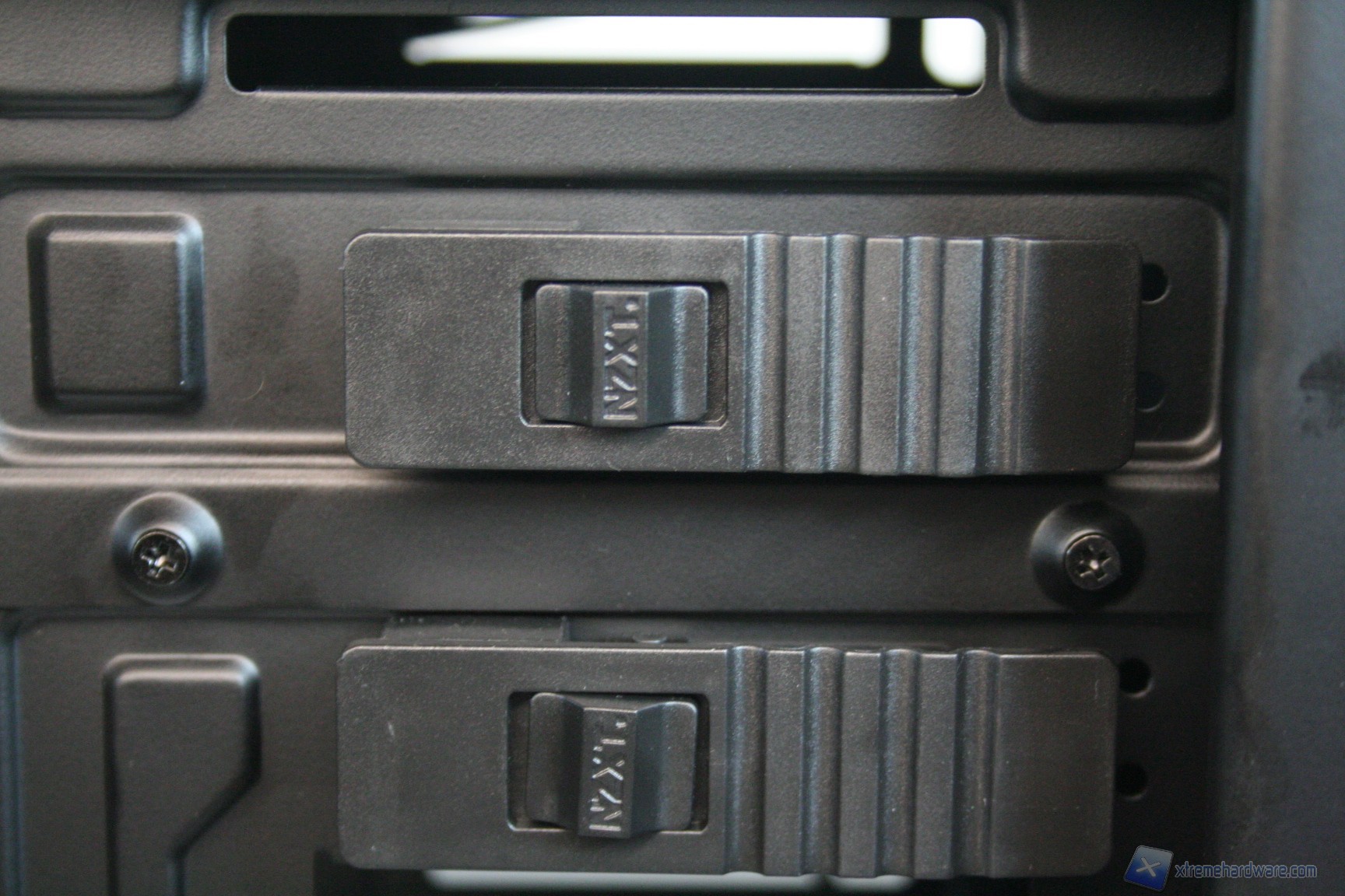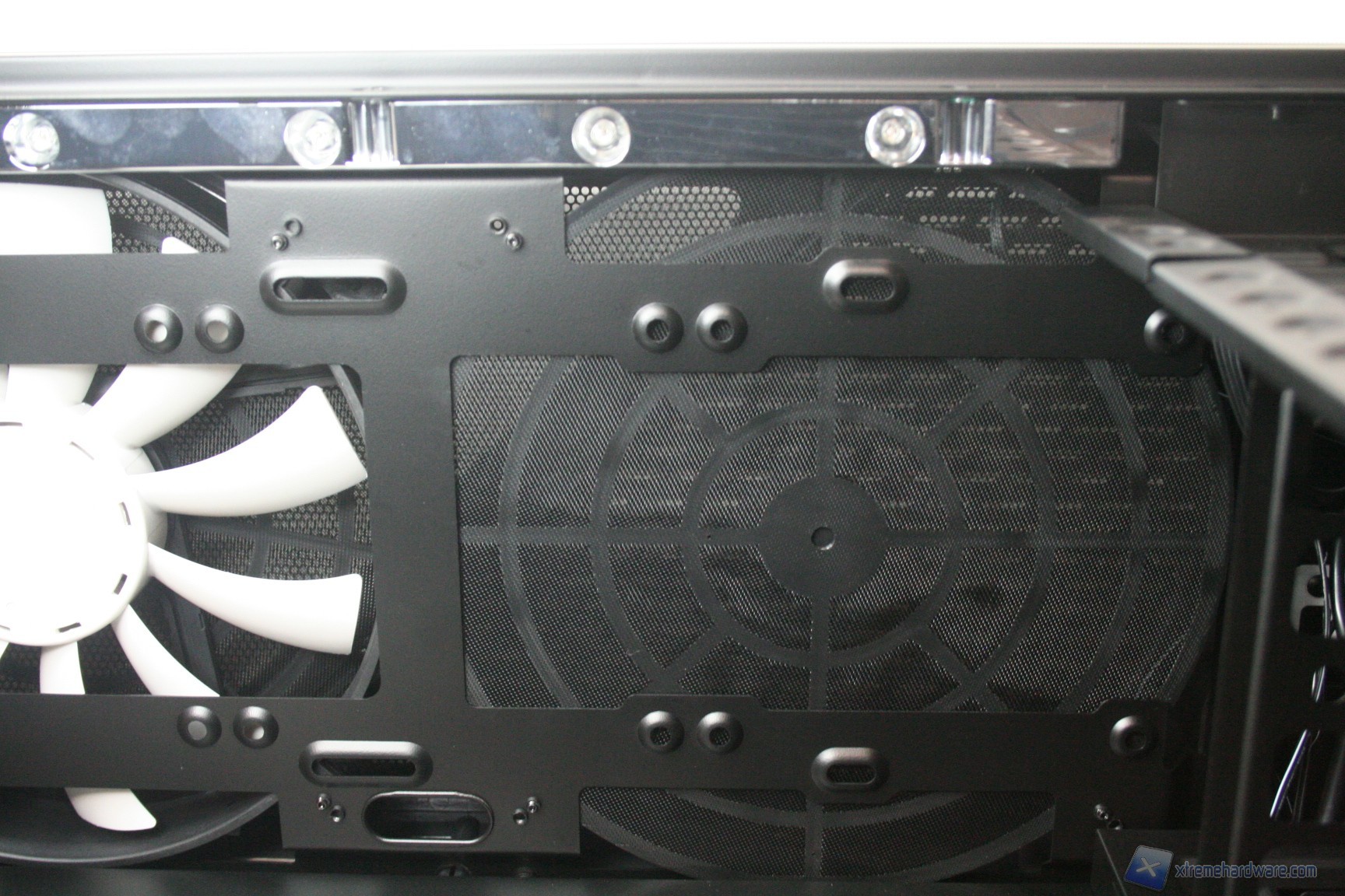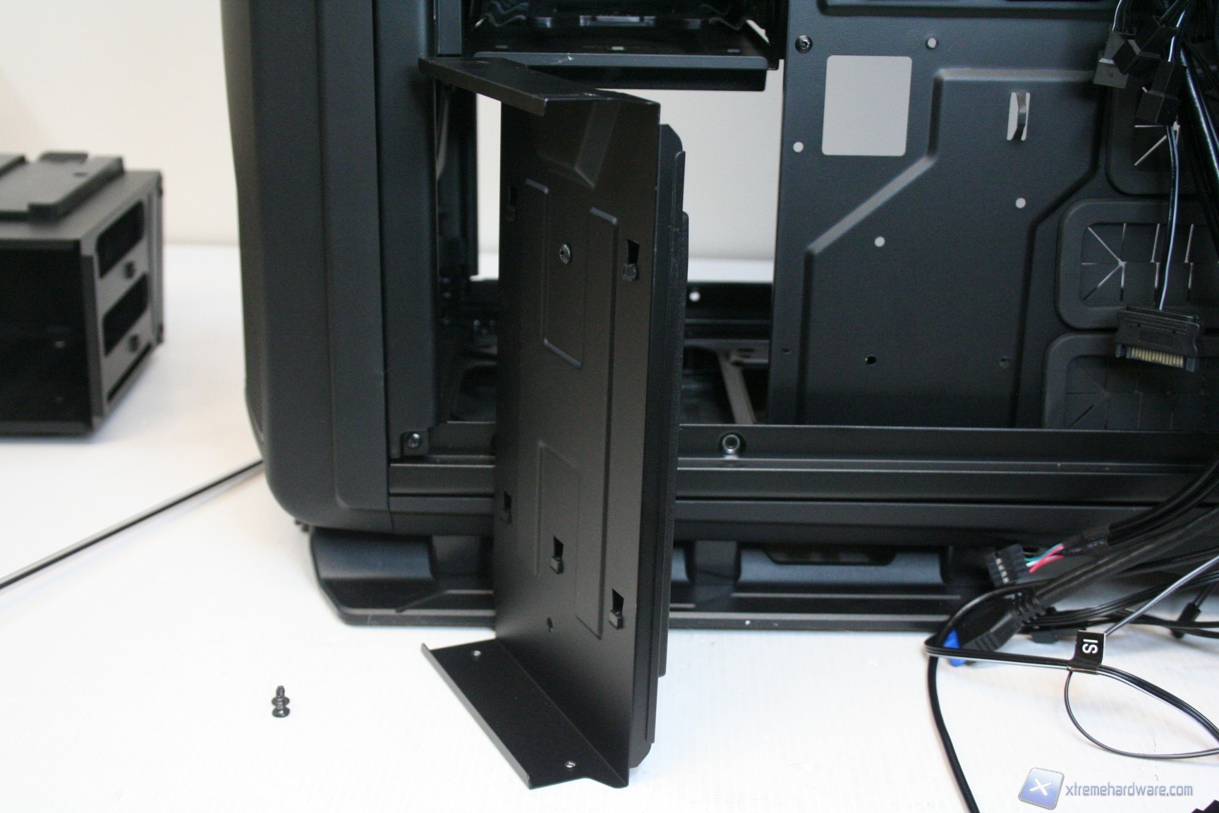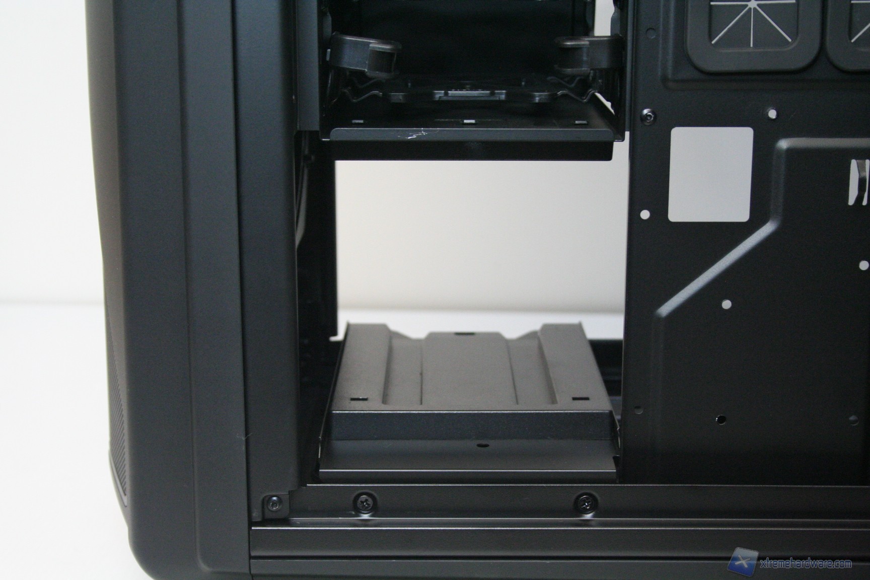 La gestione dei dischi rigidi è molto buona in quanto è presente un sistema che permette un facile controllo delle periferiche, sebbene non siano presenti predisposizioni per sistemi hot-swap. Il sistema di aggancio, per quanto valido, è leggermente lasso, con gli hard disk non installati. E’ presente un sistema di assorbimento delle vibrazioni simile ai modelli Silverstone ed è anche possibile rimuovere il cage inferiore, per poter così installare un radiatore da 280mm, con annesse ventole!