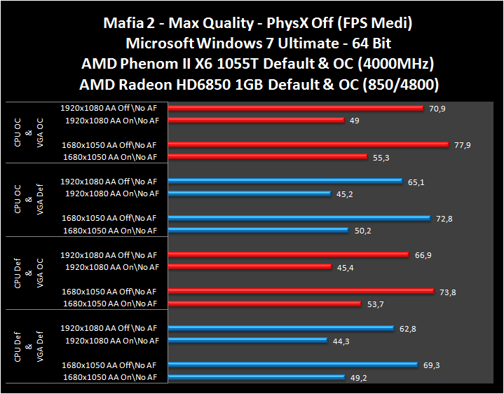 Nel grafico che segue, i risultati ottenuti con il Benchmark Tool del gioco. I test sono stati eseguiti alla massima qualità, alle due risoluzioni di riferimento con vari livelli di Antialiasing.